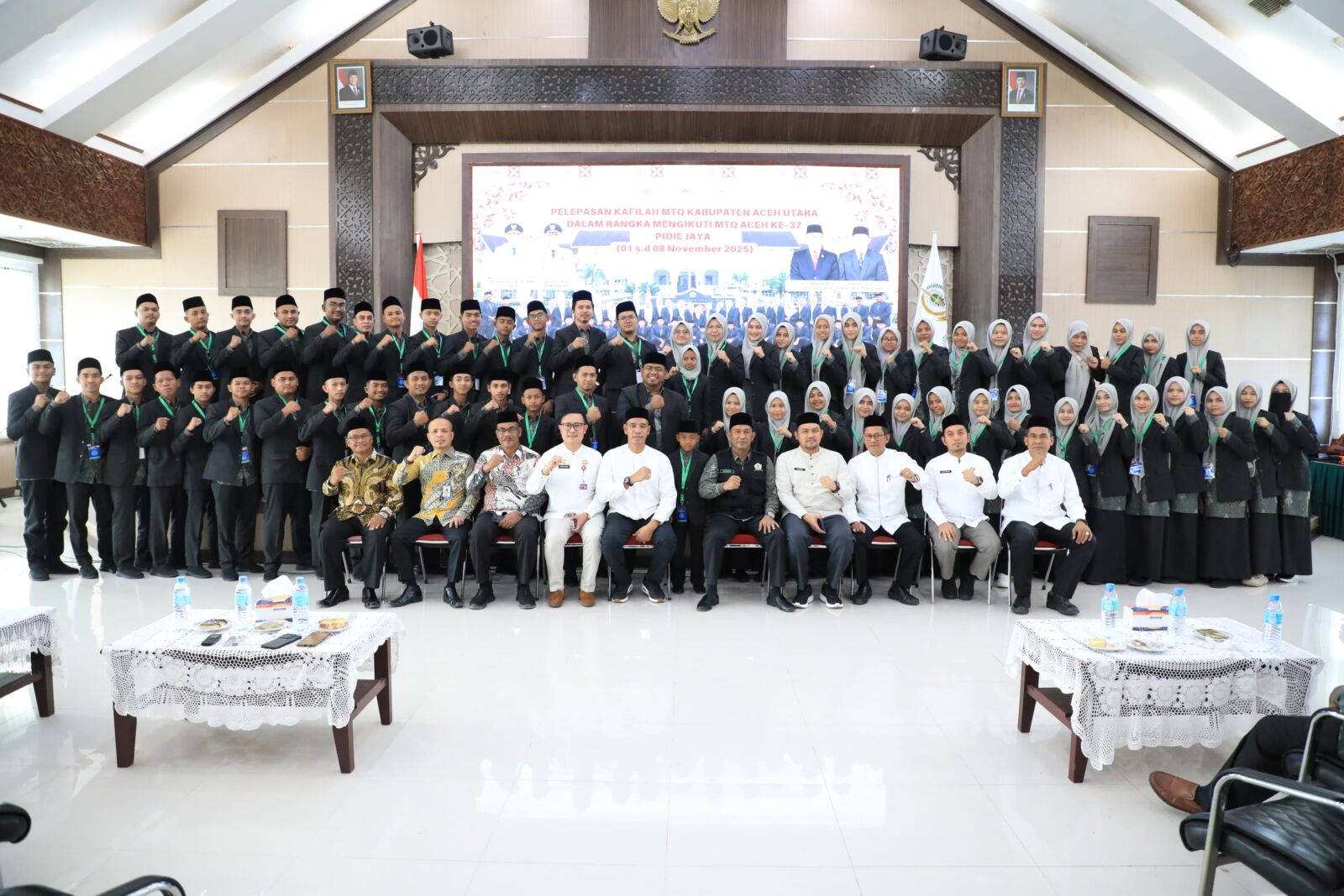 LHOKSUKON – Pemerintah Kabupaten Aceh Utara secara resmi melepas keberangkatan 61 orang kafilah Musabaqah Tilawatil Qur’an (MTQ) ke-37 Tingkat Provinsi Aceh yang akan berlangsung di Kabupaten Pidie Jaya pada 1–8 November 2025.