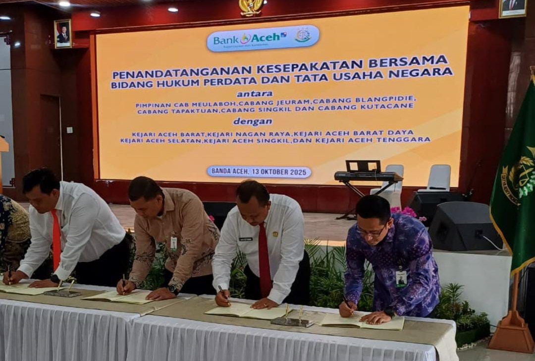 “Penandatanganan ini di hadiri semua kepala Bank Aceh dan kepala Kejaksaan di setiap kabupaten kota. Kita harapkan dapat mempercepat koordinasi di lingkungan kejaksaan dan Bank Aceh, khususnya di wilayah hukum Aceh,” kata Kepala Bank Aceh Syariah melalui kepala Bank Aceh Kutacane, Doni Rachman, Senin (13/10/2025).