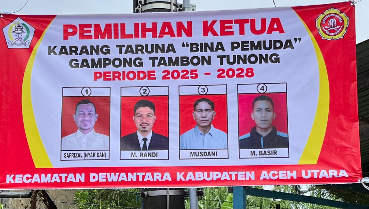GENTAPOST.COM – ACEH UTARA | Karang Taruna Bina Pemuda Gampong Tambon Tunong, Kecamatan Dewantara, Kabupaten Aceh Utara, akan menggelar pemilihan ketua baru untuk masa bakti 2025–2028 pada Minggu, 13 Oktober 2025.