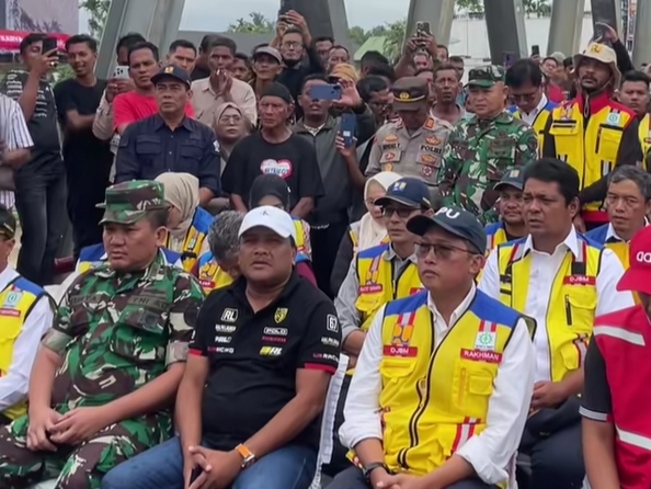 Ratusan warga terlihat memadati area jembatan untuk menyaksikan langsung momen bersejarah tersebut. Kehadiran sosok Bupati yang turun langsung ke lapangan memberikan suntikan semangat bagi warga sekitar yang selama ini terdampak oleh perbaikan jembatan.