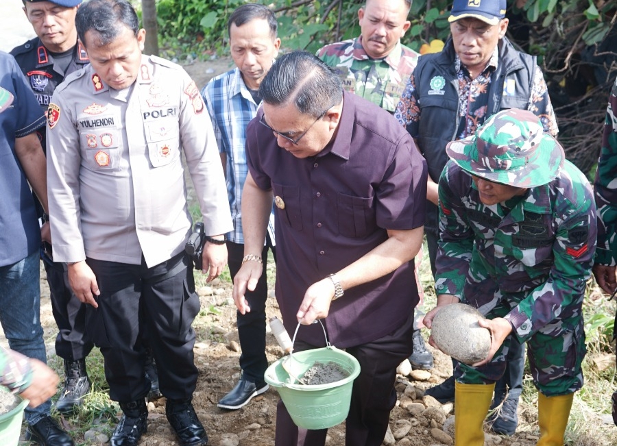 Kutacane_Bupati Aceh Tenggara, H. M. Salim Fakhry, melakukan peletakan batu pertama pembangunan jembatan gantung perintis Garuda di Desa Kumbang Jaya, Kecamatan Badar, Jumat (3/4/2026).
