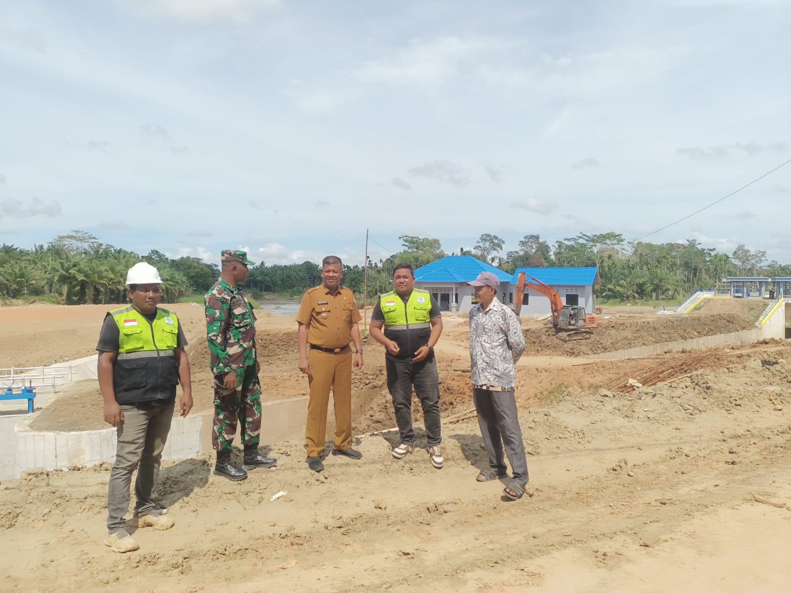 Dalam peninjauan tersebut, Camat Meurah Mulia, Abd Rahman, turun langsung ke lokasi proyek untuk memastikan proses teknis pengaliran air berjalan sesuai rencana. Mengenakan seragam dinas cokelat, Abd Rahman tampak berkoordinasi erat dengan unsur TNI, kontraktor, dan petugas lapangan di atas tanggul bendungan yang sedang dalam tahap penyelesaian akhir.