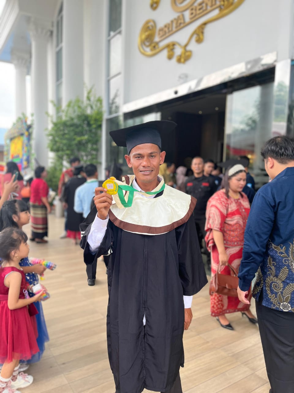 “Menjadi anak petani cabai mengajarkan saya arti kerja keras. Setiap tetes keringat orang tua adalah motivasi terbesar untuk terus berjuang,” tutur Satria dengan mata berkaca-kaca usai mengikuti wisuda di Griya Benn, Jalan Amir Hamzah, Medan, Rabu (15/10/2025).