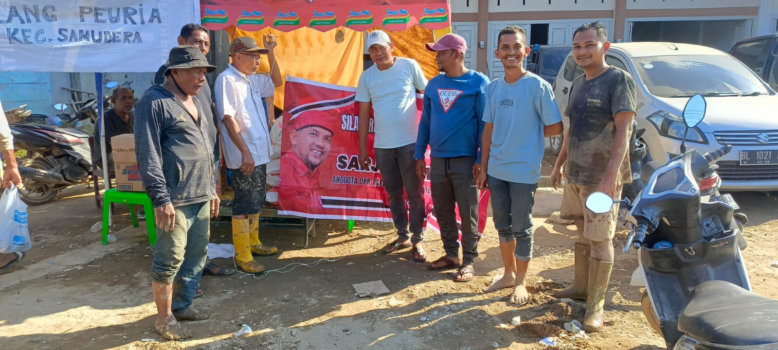 Bantuan disalurkan melalui timnya ke beberapa titik, termasuk Desa Blang Peuria, Kecamatan Samudera, serta Blang Reuma dan Ranto, di Kecamatan Meurah Mulia. Dokumentasi lapangan menunjukkan para relawan menumpuk dan mencatat paket sembako yang datang secara bergelombang, sementara warga sebagian masih berlumur lumpur setelah membersihkan rumah menyambut kedatangan bantuan itu dengan rasa lega.