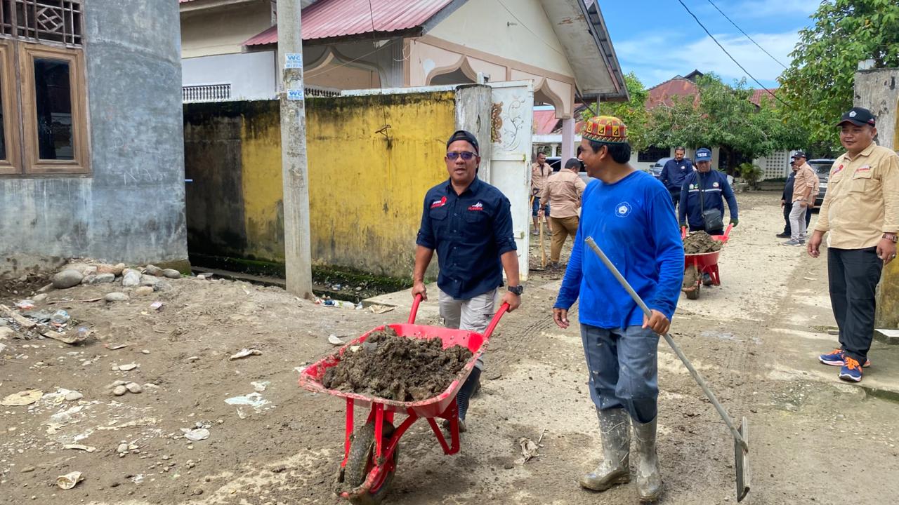Aceh Utara – Kepala Dinas Kepemudaan, Olahraga dan Pariwisata Ekonomi Kreatif Kabupaten Aceh Utara, Zulkifli, S.Ag., M.Pd, turut serta dalam kegiatan Gotong Royong Massal pembersihan pascabencana banjir di Dayah Malikussaleh, Panton Labu, Kabupaten Aceh Utara, Senin (29/12/2025), sesuai arahan Bupati Aceh Utara.