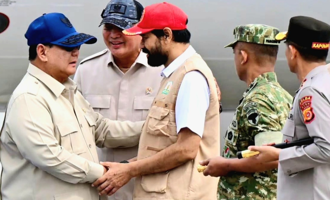 GENTAPOST.COM – ACEH BESAR | Gubernur Aceh H. Muzakir Manaf (Mualem) menyambut langsung kedatangan Presiden Republik Indonesia Prabowo Subianto di Bandara Internasional Sultan Iskandar Muda (SIM), Aceh Besar, Minggu, 7 Desember 2025. Kunjungan ini dilakukan sebagai respons cepat pemerintah pusat terhadap bencana banjir yang melanda sejumlah kabupaten di Aceh.