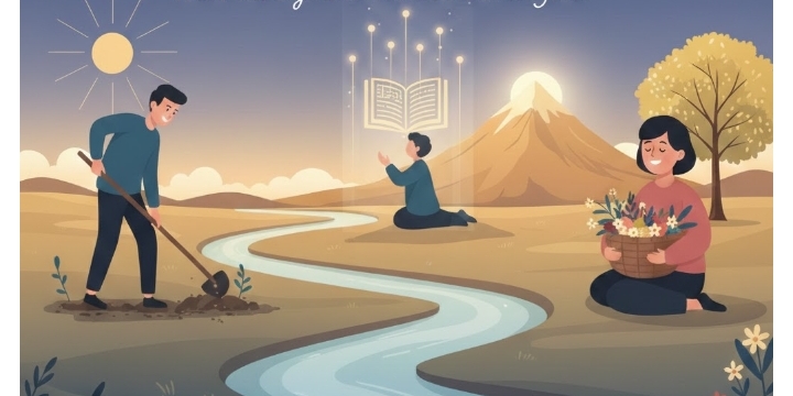 Ikhtiar bukan hanya tentang mencari rezeki, tetapi juga memperbaiki akhlak, menuntut ilmu, menjaga keluarga, dan berkontribusi bagi sesama. Bahkan Nabi Muhammad ﷺ mencontohkan keseimbangan antara usaha dan tawakal melalui sabdanya, “Ikatlah untamu, kemudian bertawakallah.” (HR. Tirmidzi). Pesan ini menegaskan bahwa tawakal tidak menggugurkan kewajiban berusaha.