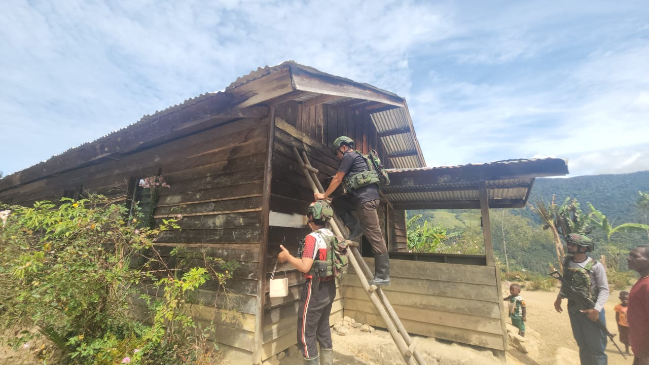 Homeyo – Intan Jaya, Personel Satgas Pamtas RI – PNG Mobile Yonif 113/JS menjelang hari raya natal melakukan pemasangan ornamen natal dan pengecetan gereja di setiap kampung di Distrik Homeyo Kabupaten Intan Jaya Provinsi Papua Tengah. Selasa (23-12-2025).