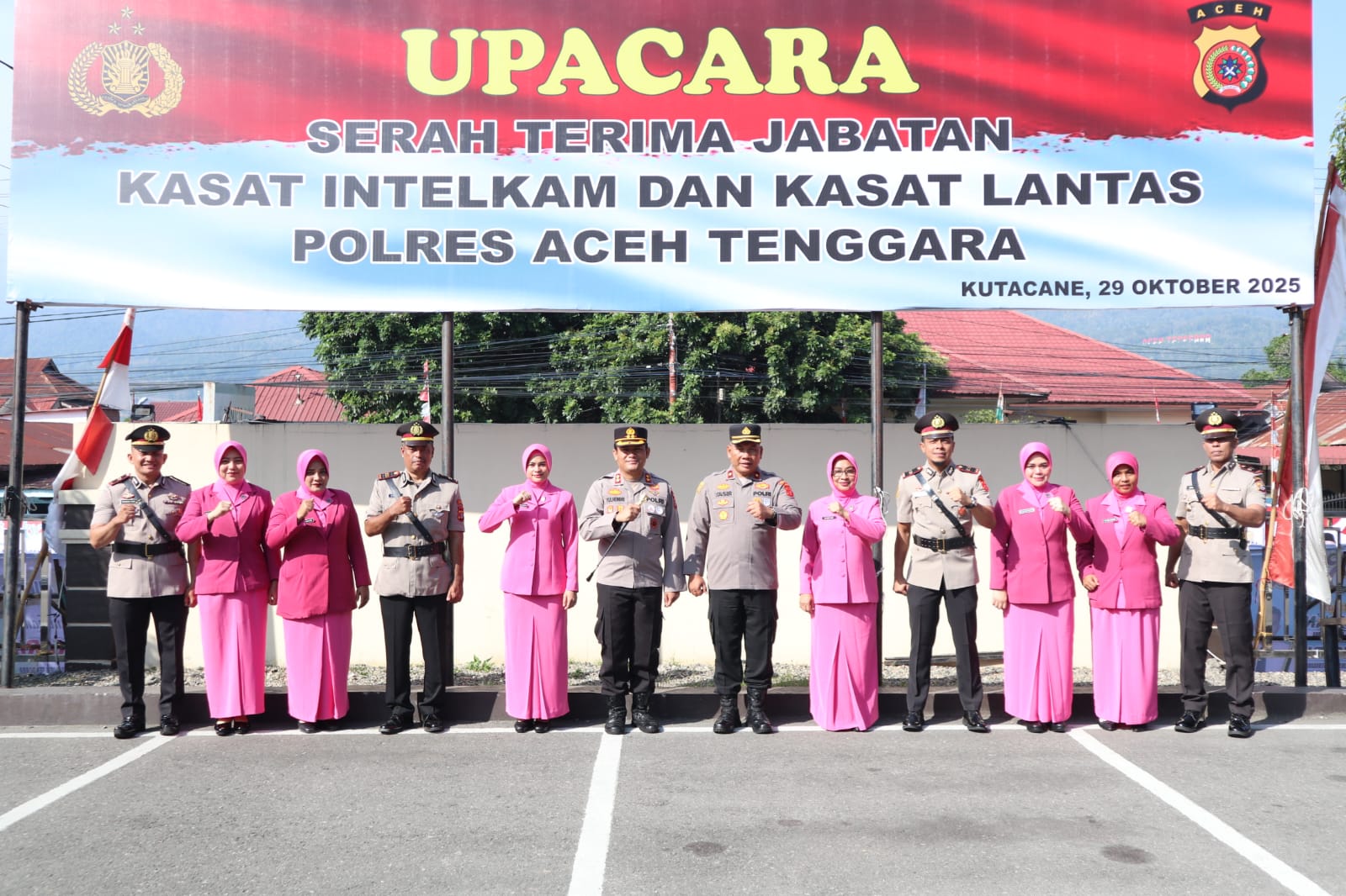 Kapolres juga memberikan apresiasi dan ucapan terima kasih kepada pejabat lama atas dedikasi serta pengabdian selama bertugas di Polres Aceh Tenggara.