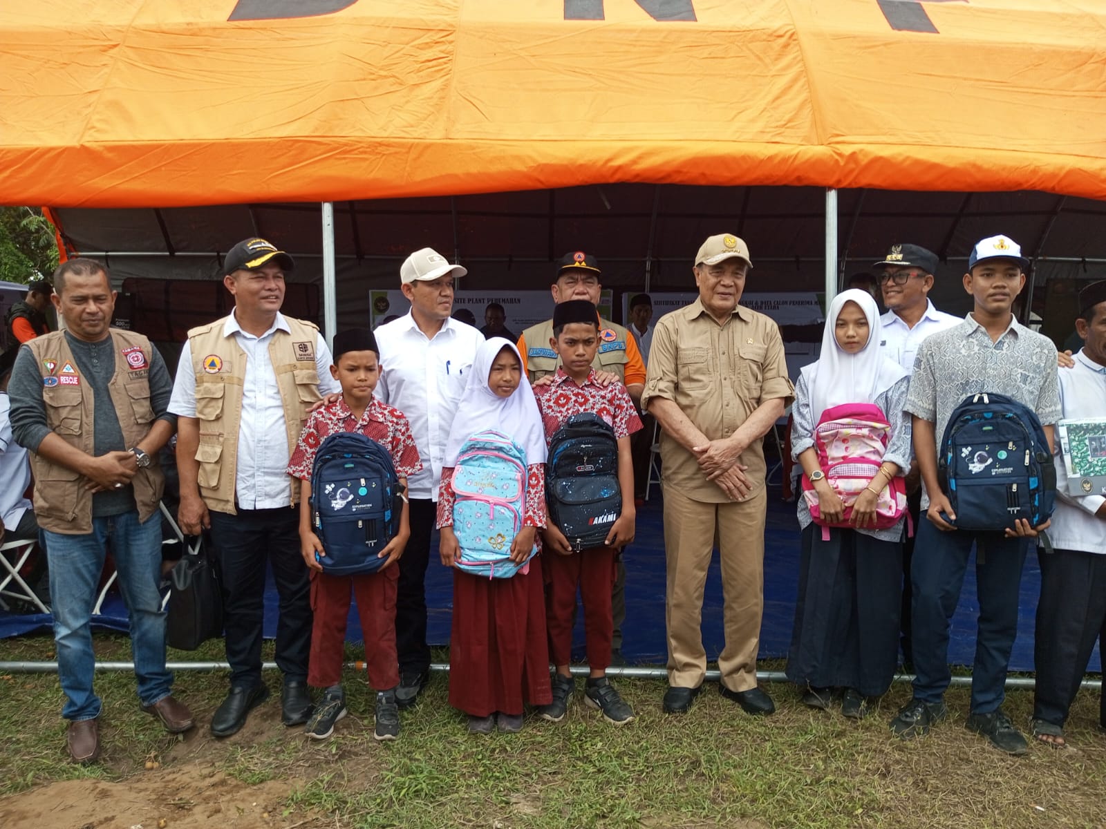 Dalam kunjungan itu, Menko Polkam turut menyerahkan bantuan perlengkapan sekolah bagi anak-anak korban banjir. Bantuan paket rumah diserahkan secara simbolis kepada warga yang diwakili Tgk Muhammad Hasan, selaku Panglima Laot setempat.