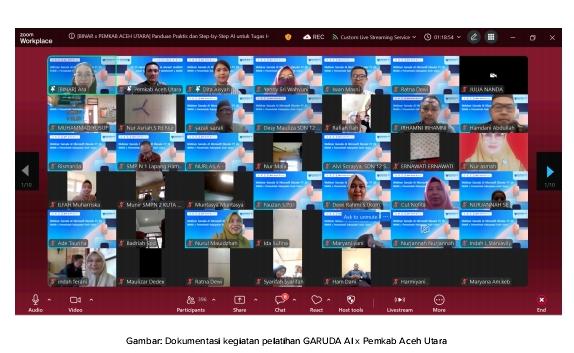 Kegiatan yang dilaksanakan secara daring ini bertujuan untuk membekali ASN Aceh Utara dengan keterampilan AI Generatif guna mengoptimalkan efisiensi kerja harian. Fokus utama pelatihan mencakup pemanfaatan alat AI untuk penyusunan draf dokumen (drafting), perangkuman materi, riset data, hingga pembuatan laporan dan presentasi profesional yang lebih terstruktur dan hemat waktu.