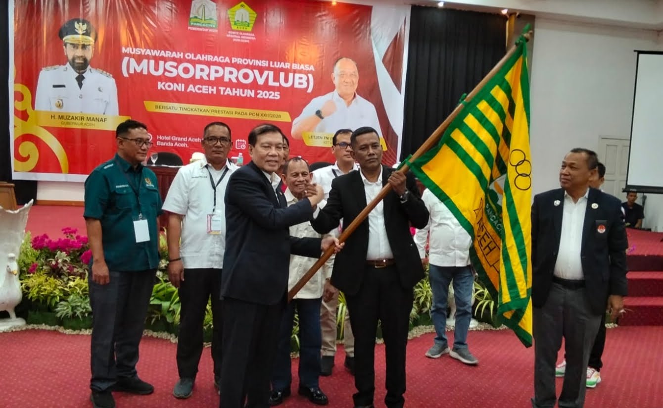 Pon Yaya terpilih secara aklamasi dalam Musyawarah Olahraga Provinsi Luar Biasa (Musorprovlub) KONI Aceh 2025 yang berlangsung di Hotel Grand Aceh Syariah, Banda Aceh, Kamis (9/10/2025).
