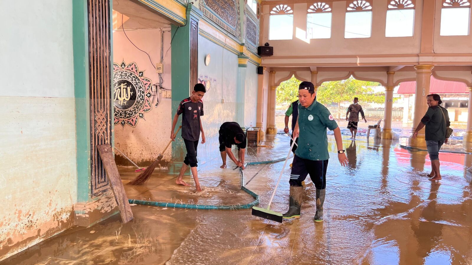 Menurutnya, kondisi tersebut berdampak pada kegiatan ibadah masyarakat. “Sudah dua pekan warga tidak dapat melaksanakan salat Jumat berjemaah maupun salat rawatib di masjid karena kondisi bangunan yang tertutup lumpur,” ujar Waled Landeng.