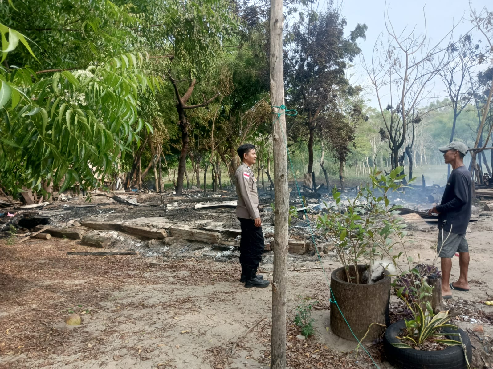 Menerima informasi tersebut, personel Polsek Dewantara langsung mendatangi TKP, mengamankan lokasi, serta berkoordinasi dengan aparatur desa dan petugas pemadam kebakaran untuk penanganan cepat. Satu unit mobil pemadam dikerahkan ke lokasi dan api berhasil dipadamkan sekitar pukul 16.00 WIB.