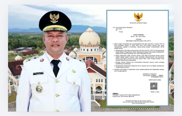 LHOKSUKON | Pemerintah Kabupaten Aceh Utara resmi mengeluarkan panduan bagi seluruh masyarakat dalam menyambut Hari Raya Idul Fitri 1 Syawal 1447 Hijriah.