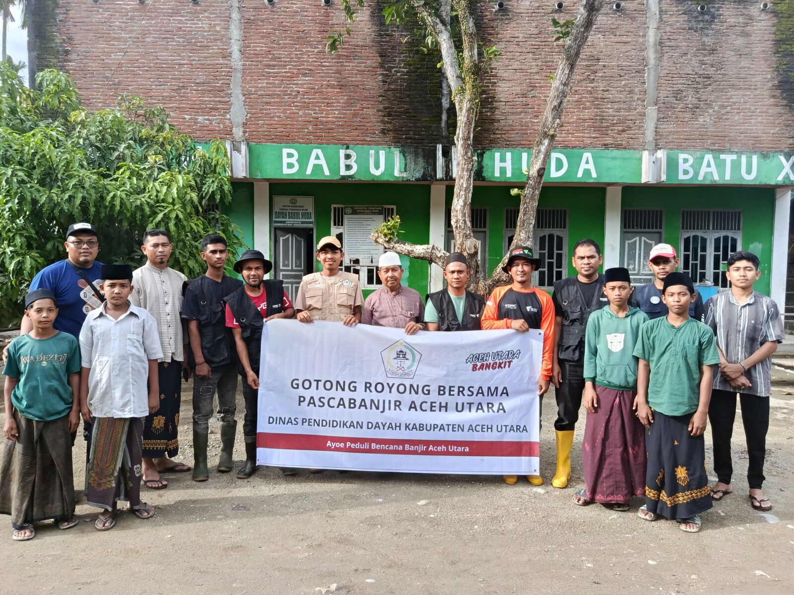Menindaklanjuti arahan Bupati Aceh Utara, H. Ismail A.Jalil, SE.MM, Pasca bencana hidrometeorologi yang melanda Kabupaten Aceh Utara, agar Dinas Pendidikan Dayah bersama seluruh Organisasi Perangkat Daerah (OPD) untuk turun ke lapangan membersihkan lembaga pendidikan dan tempat ibadah yang terdampak banjir.