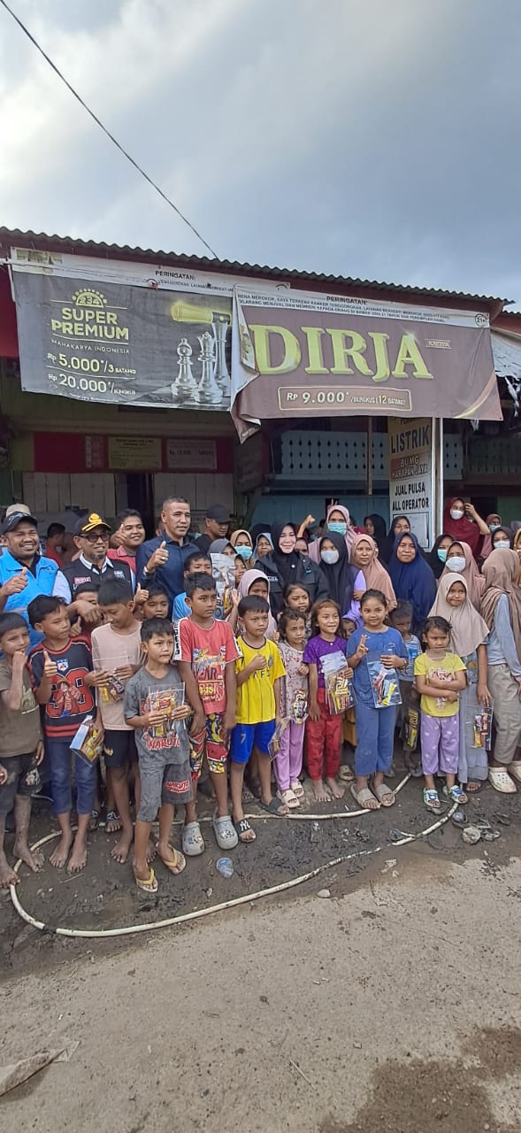 Penyambutan berlangsung di salah satu posko pengungsian korban banjir. Bantuan yang disalurkan berupa paket sembako, bahan pangan pokok, serta kebutuhan mendesak bagi anak-anak dan kelompok rentan.