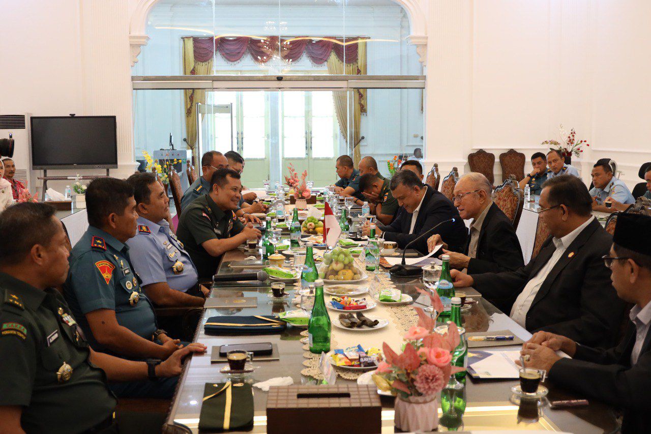 GENTAPOST.COM – BANDA ACEH | Paduka Yang Mulia Wali Nanggroe Aceh Tgk. Malik Mahmud Al Haytar menerima kunjungan Komandan Sekolah Staf dan Komando Tentara Nasional Indonesia (Dansesko TNI) Marsekal Madya TNI Arif Widianto, S.A.B., M.Tr.(Han)., bersama rombongan perwira siswa Pendidikan Reguler (Dikreg) ke-54 Sesko TNI Tahun Anggaran 2025 di Meuligoe Wali Nanggroe, Kamis (30/10/2025).