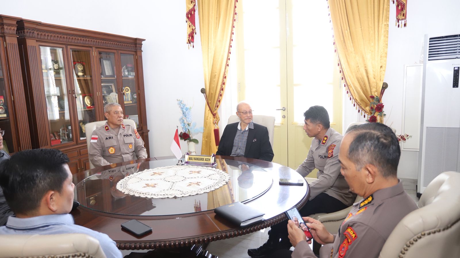 Pertemuan tersebut berlangsung dalam suasana hangat dan penuh keakraban serta menjadi bagian dari upaya memperkuat koordinasi antara lembaga Wali Nanggroe dan Kepolisian dalam menjaga keamanan serta melindungi masyarakat Aceh.